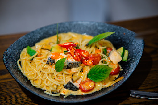 š„ Food: We had the rose spaghetti with battered prawns š¤ and the poached eggs with hem on olive bread. For drinks we had the matcha latte and hazelnut latte, salted caramel cheesecake for dessert. Everything was goodāportions, waiting time, flavours, and choices. They also have a $19.90 lunch menu for the weekdays with some scrumptious Asian options!