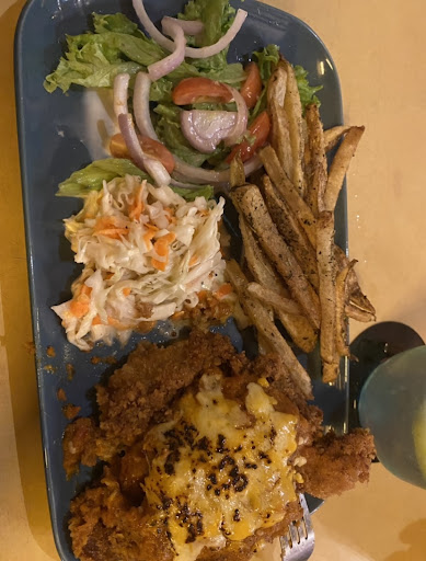 The chicken parmigiana was really not worth it. After waiting for an hour the least youâd expect is that the food tastes great, the chicken piece had a lot more skin than meat and the chicken itself was bland with no taste to it whatsoever ever. By far the best thing on the plate was the coleslaw and the garden salad.