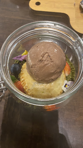We came in approaching 9pm. We ordered the tiramisu and the nutella puff. Drinks wise we asked for a cappuccino. This was total 50+ MYR. I was told the nutella puff would take 15-20mins and chose to wait. The tiramisu and cappuccino came out pretty quickly. Tiramisu is very rich with a thick coating of cocoa powder on top. Tasted amazing, but definitely made us feel a bit sickly by the end of it. Cappuccino was good - coming from Melbourne where we loooove our coffees and are considered “coffee snobs” I’d say this reminded me of any coffee you’d get from a standard Melbourne cafe. Nutella puff eventually came - it was in the presentation of a terrarium - crushed oreo like biscuits acting like soil, decorative edible flowers, and fruits to act as the greenery. It was very cute - pictures could not do it justice. We expected a puff like choux pastry but it was more pastry puff like what they use for curry puffs. Still tasted amazing with the nutella in it and chocolate ice cream on top. The fruits were a nice fresh change from all the sweet. The puff was also still warm which was a nice contrast from the ice cream.