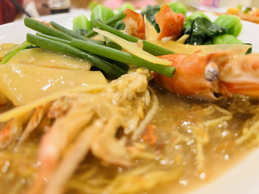 For dessert, we were treated to a 100% natural collagen- packed jelly prepared from the extract of deep sea fish scales ( 天然美顏魚鱗凍)。According to medical journals, deep sea fish scales are a natural source of superior collagen that is most beneficial to skin elasticity and joint health! The jelly was served with gingered honey which made this dessert even more delicious! This special dessert is a real gem not to be missed especially by ladies!