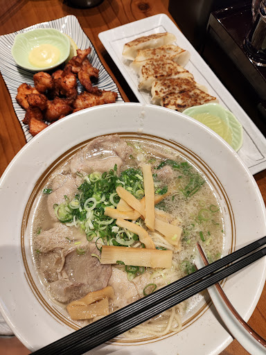If you're looking for ramen, there are only 2 choices to make; pork (Hakata Tonkotsu Ramen) or beef (Omi beef A5 Wagyu Shoyu Ramen). Both ramen broth were clean and lightly flavored, and my preference after trying both was the Omi beef ramen. If you're looking for extremely thick and savory (salty) broth, this is not the right place. I was able to finish the whole bowl of ramen broth here without going into a sodium shock. I also ordered chicken karaage and gyoza; the chicken was expertly fried with a crispy outer layer, and a very juicy inside while the gyoza was a good accompaniment. The gyoza was served with yuzu vinegar which stripped away any gaminess from the pork filling, and it was a new and wonderful flavor experience for me. One nice thing to note as well is that the green tea is free-flow and self-service with a choice of hot or cold. Nice...