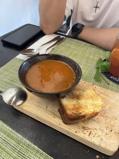 The banana cake came as banana milkshake (because he probably misheard me but in the order chit it was also banana cake so how do you not check?). He didn’t apologise or try to do any service recovery. Tomato soup finally came after 45mins. It tasted bland, like water with herbs. The bread that came along with it was crispy and fluffy but did not save the dish.