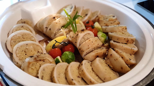 On the main, you find items not often found on usual buffet menu like Seafood Jambalaya, Stuffed Squid with Raisins and Cous Cous, Grilled Salmon Fillet with Dill Sabayon, Beef Stroganoff, Grilled Lamb Cutlets with Rosemary Olive Sauce and many more.