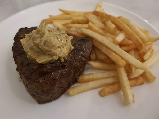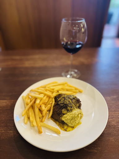 What followed was a symphony of pacing and flavour: a velvety Chilean Cab Sauv, crisp garden salad, a warm bread roll with butter, golden shoestring frites fresh from the fryer, and at the centre, a tender, juicy medium-rare steak crowned with a luscious French-inspired butter sauce. Each element appeared at just the right moment, unhurried yet seamless. Too bad no dessert is served - a crème brûlée would have been perfect!