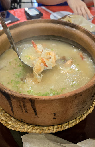 You can get 6 bowls of porridge from a clay pot order for two persons. There is enough for three persons if you are not a big eater. Slices of young ginger are also added to the preparation, giving it the fragrance of ginger, which is not complete without it Add a dash of soya sauce and pepper and carefully suck in the boiling hot porridge for that unforgettable taste. The fun is eating it when piping hot.