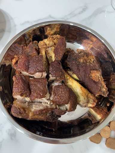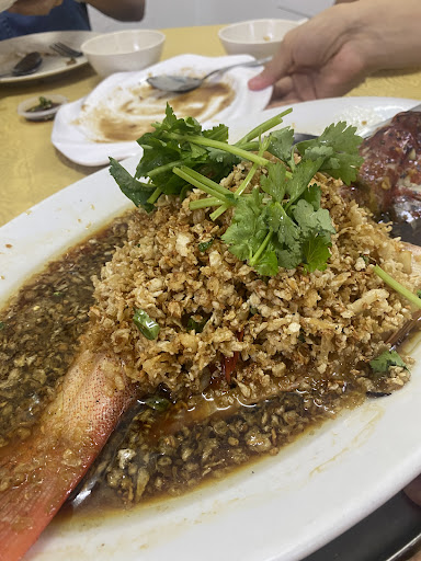 The garlic “lala” clam broth had a sour and garlicky twang to it that was very refreshing, clam meat was average size and fresh. The black pepper chilli crab (3 crab 1kg 135rm) was very fresh and meaty enough, the black pepper flavour was not too spicy but very smokey which was good. Every piece of crab was coated in a layer of thick black pepper sauce. Abit too salty and dry for my liking but still a good black pepper base. The steamed red grouper was average but the fish was fresh and meaty. A lot of deep fried “cai-poh” preserved radish on top which was so good. Salted egg baby cabbage was pretty average, salted egg flavour was strong and creamy. The marmite pork ribs were the highlight for me, the pork ribs were steamed before being stir fried in the sauces, which made the meat extra tender and juicy, the ribs were big and a good balance of meat and fats. Highly recommend.
