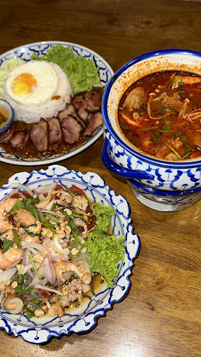 In Nov 2022, I passed by and saw it's still in renovation mode. Honestly totally forgotten about it till today, understood they opened for biz in January 2023. It has a cozy feel and appreciates some of the deco was brought in from Thailand to give more feel to customers. Let dive into the food. Unfortunately I did not take snaps of the menu but anyways drop in to find out for yourself. By the way there are desserts on display which you could pick at the counter. First is coconut long black coffee. Coffee didn't over power the coconut which I like it a lot. It's best taken in cold. Seafood Tomyum rice set. It's not spicy where you could request to add more spicesness to it. Fyi. Thai style green curry chicken pasta is nice as well. With Thai basil leave added, brings the flavor out more to it. One of my fav for today is sour&spicy kerabu grill pork collar. Super yummy with he tenderness of the pork. I would suggest to add some chili padi to it. Finally to cleanse your taste buds is Tub Tim grob. A popular thai dessert where waterchest nut and chempedak are added to coconut milk, served cold. FYI, there are no a-la-cart on dishes. All are in set of rice. Good experience with this...