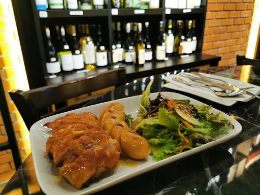 Read moreA great place to have fantastic Western Food and a wide range of red and white wines from various France, Spain, Australia, German, Chile and many other countries. They are have western food choices from steak to fish & chips to pastas. We ordered their Aglio Olio, Korean Noodles with Caramelized Roasted Pork (Siow Bak), Fish & Chips serve with salad, onion rings and fries and BBQ Chicken with wedges. The food we like best was the BBQ Chicken with wedges and Aglio Olio. The Aglio Olio was purely simple but delicious and tasty. For the BBQ Chicken with wedges was the chicken meat BBQ to perfection which was so flavourful, tasty, tenderized meat and spiciness (delicious & fragrant spices used). The upstairs ambience here was nice with gentle music and soft lightings, A very good place to dine and toast with family, friends...