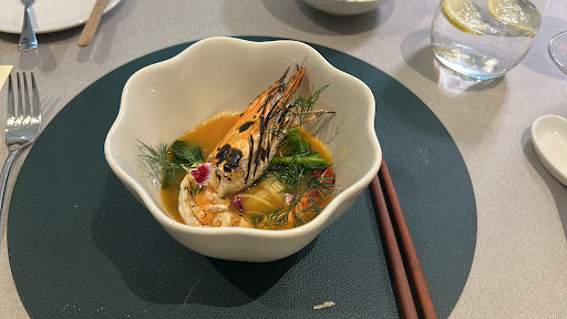We opted for the 3 course set menu. The food was nice on the whole and was tasty and nicely presented. However my main course was very fatty, which I know you can get with braised beef, but the majority was inedible which was a shame as the broth it was served with was v tasty. The bread to accompany our second course tasted stale which was also a shame as it would have been lovely to soak up the juices. Most of the items on the menu had a supplement which I chose to have for my 2nd course by adding prawns (for which I received 1 prawn).