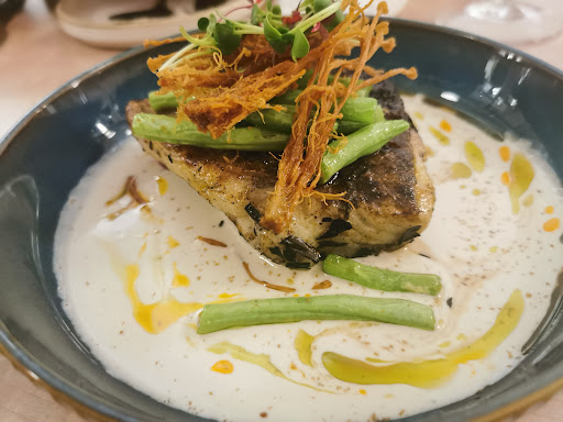 Read moreThe food here is amazing, absolutely good..the menu is so interesting. Congratulations to Chef Hou who has done such a wonderful menu. Our first course was the nasi ulam, the combination of flavours n texture of the crispy rice eaten together with the cured barracuda n the pickled onions and herbs really tickle and wake up our taste buds. Our second course was the ox tongue braised in red wine to perfection, tender and eaten together with garlic aoili, capers and pickled onion is another superb dish. We then had the white prawns which was so flavourful, perfectly grilled with fermented prawn butter, wakame n the age soy sauce made the prawns so tasty. It comes with a few pieces of charcoal grilled toast. I dont really eat bread but i tried one piece of the toast and was absolutely impressed as the toast soaked up the flavourful oil. Our main course was charcoal grilled barramundi with banana leaf in a miso coconut and the fish was so beautiful cooked n taste so good with the coconut miso cream. We also ordered a side dish of grilled cauliflower with spicy mala cream. The combination of the cauliflower with the mala (sichuan pepper) cream was again another wake up to the taste buds n it goes so well with the grilled cauliflower. The fun part is the dessert. I love the "drink Guinness stout and eat peanut" which is a combination of Guinness stout ice cream with peanut butter parfait, again it tickles my taste bud which gives me this great satisfying finale to my whole meal and my hubby love the char siew bacon ice-cream.. I am very impressed with Chef Hou who has done a wonderful job combining the different flavour and texture to give us a truly yummy tasty n flavourful adventure, tickling our tastebuds with perfection.