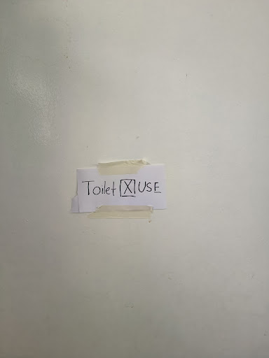 Next, we wanted to use the bathroom. As attached, you can see the damn sign. The door to use the toilet itself was locked with that sign.