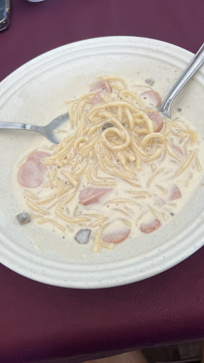 The food wasn’t good, had spaghetti carbonara which was made with sausages instead of bacon and it was way too much sauce that it looked like a noodle soup. The waiter was absolutely unmotivated and unfriendly. He brought our plates to the table and just putted the plates on the empty space on the table instead of placing them in front of the guests. We had to ask 2 times to get salt and pepper and the waiter reacted really annoyed on our requests because apparently he rather wanted to eat his own burger instead of serving food for the guests.