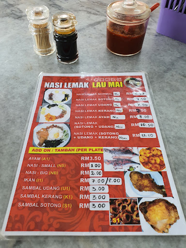 Read moreNasi Lemak Lau Mai - Located at residential area in Malim Jaya, this eatery is a true delight for Nasi Lemak enthusiasts. The star of the show here is undeniably their incredibly delicious Nasi Lemak. Served with a delightful array of accompaniments including ikan bilis, vegetable kangkung, and fried sunny side up, it embodies the essence of a satisfying Malaysian breakfast. What sets this place apart is the diverse choices of sambal accompaniments available sambal sotong, prawn and cockles, and crispy fried chicken. Beyond their signature Nasi Lemak, the eatery also serves tantalizing options like dry noodles, asam pedas. Prices here...