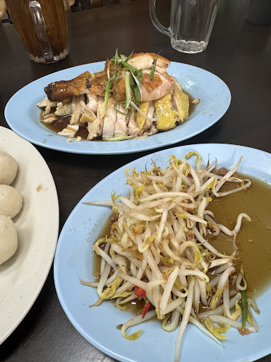 We ordered 1/2 chicken - white chick : mushy, bland, tasteless meat Roasted chicken: dry, tasteless meat 15 chicken rice ball : texture okay but bland 1 small taugeh : fresh but soya sauce taste so light 1 sea coconut drink and 1 warm water: standard taste