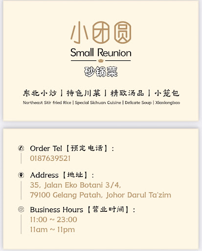 Read moreNestled in Eco botanic, Small Reunion Restaurant is a delightful surprise for lovers of regional Chinese cuisine. Specializing in Dong Bei, Sichuan, and Hunan dishes, this week-old gem already shines with its comforting “home-cooked” ethos and warm, attentive service.