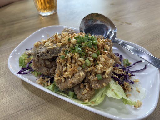 • 蒜香排骨色泽金黄,搭配诱人的炸蒜。外酥内嫩,口感尚佳,但调味略显保守,若能增添层次感会更出彩。 • 咸蛋虾仁口感细腻,带有蛋香与微甜,但整体风味偏柔,缺乏咸蛋应有的浓烈风味。 • 烧肉芥兰组合经典,烧肉肉质饱满,与炒芥兰形成鲜明对比。然而芥兰略显老化,若能更为嫩绿清爽,将更显平衡。 • 金香啦啦是本次用餐的亮点。酱料丰富,香料层次分明,咖喱叶与虾米的融合带来深度,辣度适中,是值得推荐的一道菜。 • 蟹肉鱼翅羹以 RM30 定价,呈上的是一人份量的精致羹汤。虽然味道轻盈且调味得当,但分量令人意外,未能呈现鱼翅羹应有的华丽与丰盛,性价比存疑。