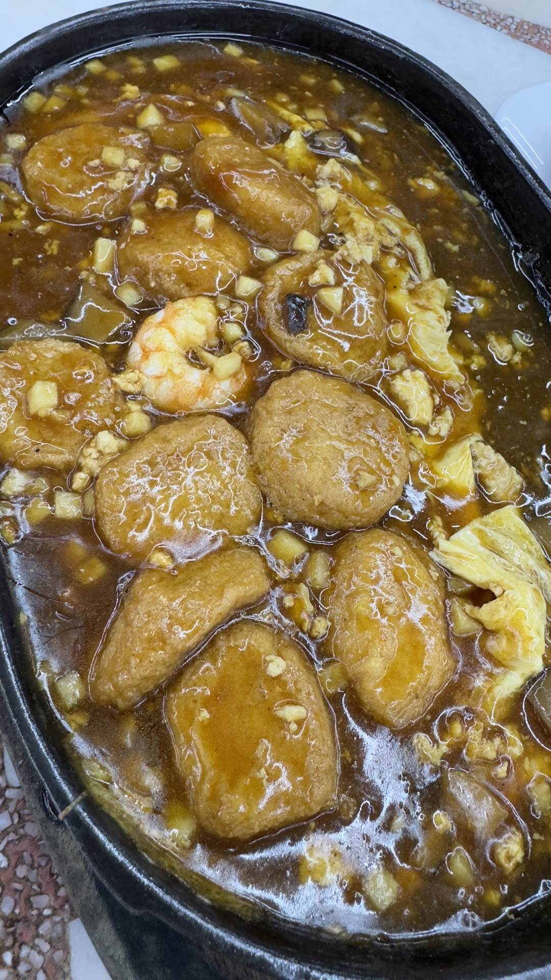 铁盘tofu came warm but not sizzling. Probably seated in the kitchen for who knows how long since our food was served after so long. We finished ou satay and still had to wait 20min for the food. Never eaten a 铁盘 that came like this.