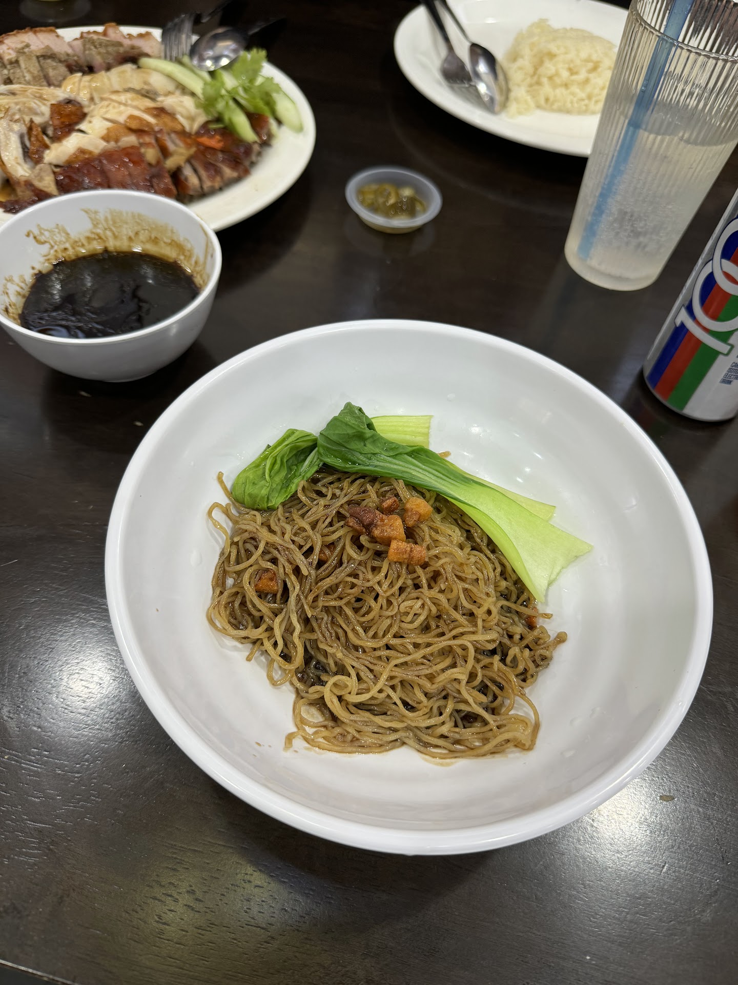 We ordered this special priced noodle and added a plate of steamed chicken. Noodle sauce is slightly sweet for me. Chicken tastes ok with the special green source.