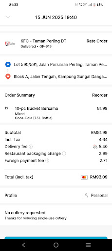 Read moreI’m really disappointed with the service at KFC Taman Perling. Despite only having 10 orders ahead of me, I had to wait 28 minutes for my food. What’s even more frustrating is that the food was already prepared but left sitting there, seemingly because the staff insisted on serving strictly by number. This led to my meal being served cold.