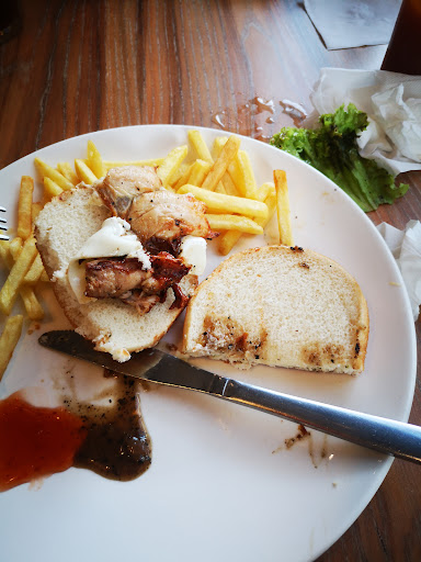 Second one is the grilled chicken burger. It was served with a simple white plate instead of the metal box shown in the menu (c'mon man I'm not in KFC). The fries also taste like the ones you can buy in the supermarket (the cheapest one).