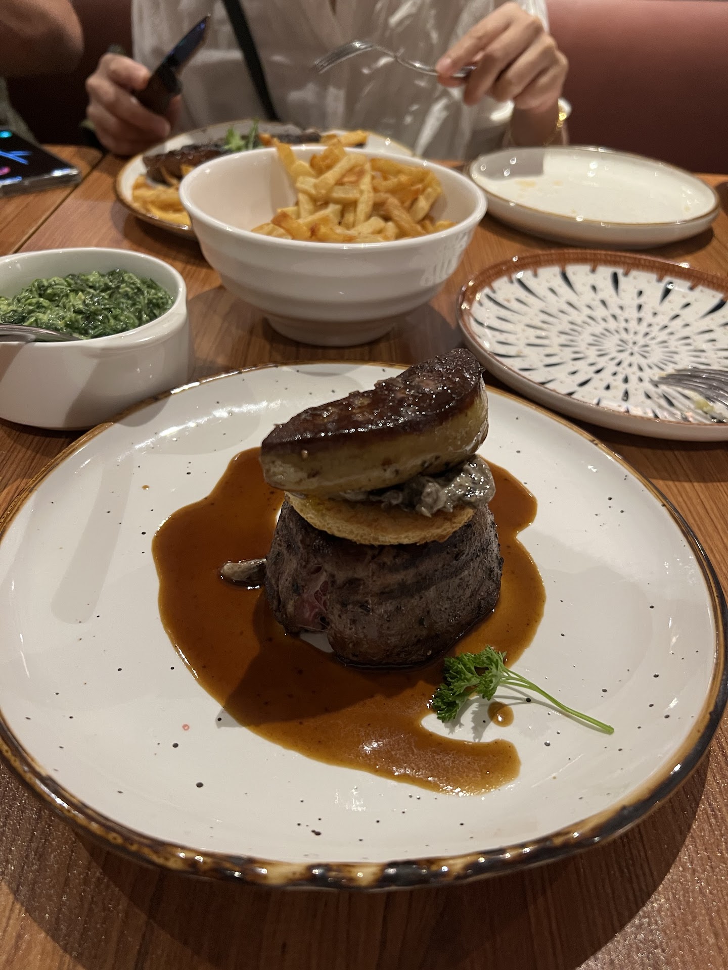 Read moreFood - Had the Ribeye, Sirloin, Lamb Chop and the Rossini X’mas special. Steaks were cut too wide and thin to have any juicy bite regardless what doneness you preferred. Lamb was better in this regard but lacked flavour due to no sauce pairing available, definitely not worth the RM190 price tag. The Rossini Fillet was somewhat acceptable with a decent sauce pairing, but it was rather cold when served. The truffle mushrooms and foie gras were nice and flavourful, which was within expectations. At a whopping average price of around RM250 each, they were truly mediocre and not worth the wait. Lastly, the signature free-flow fries were lukewarm, poorly seasoned, crudely cut and almost soggy, you’ll find nothing but disappointment.
