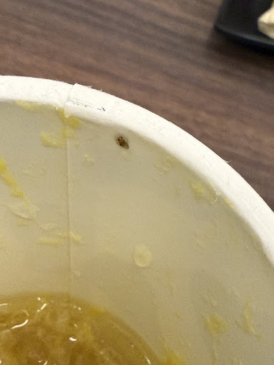 I ordered a drink, sat down, and received it. While drinking, I was browsing Google reviews and saw multiple reviews mentioning insects in the drinks. Just in case, I opened the lid of my cup, and I noticed something strange stuck to the wall of the cup and floating on top of the drink. When I took it out, I realized it was a fruit fly. Other reviews also mentioned fruit flies. It seems like they use ingredients that already have insects in them without any concern.