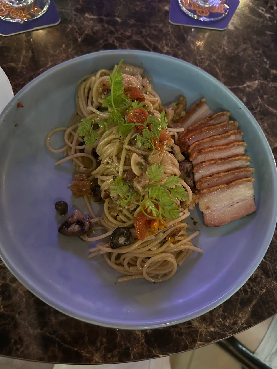 Food is absolutely amazing. We've gotten the Mini Beef Wellington, 36-hour Guinness Braised Angus Beef Stew, as well as the Irish Pork Roast & Anchovies Pasta, along with a bottle of Merlot. Each one of these tasted top notch, one of the best meals I've had in Johor Bahru.