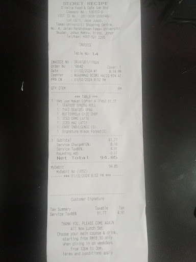 Yesterday I and my husband went there for dinner,staff don't want open mouth and and ans when we asked questions.We ordered buttermilk chicken, the chicken was spoiled and smells bad,we complained but the service staff and kitchen person said cannot prepare the food because kitchen closed, but it just 8.45pm only, but when I refused to pay for the spoiled food they very fast changed my food to the crispy chicken,we spend almost Rm100 at this Secret Resepi Aeon Taman Universiti with disappointed with the service of the staffs over there who really have attitude problems,they didn't apologies to us for the incident happened,.We really unsatisfied with quality of the food.The chicken was spoiled but they didn't noticed or checked the food before give out for customer, it's can cause food poison and health issues because lack of the Manager or the kitchen in charge,In these case the entire management must take serious action to protect their customer's health and their own business.We have proof,the bill,also can check the CCTV footages.Once again,a humble request to the management pls take further...