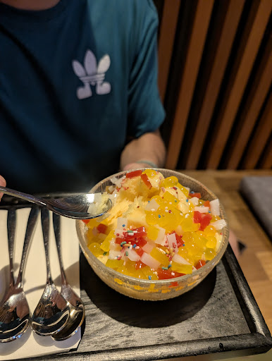We ended the meal with berry ice cream, which was a bit on the creamier side—something to keep in mind for those who prefer lighter ice creams. Since we were celebrating a birthday, the restaurant surprised us with a black sesame shaved ice dessert. The fragrance of the black sesame was delightful, and the crushed peanuts added a nice crunch.