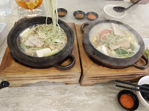The main dish will be the Sanna Me . Serve is hot stoneware and the soup will be pour into the hot stone pot with fresh ingredients inside.