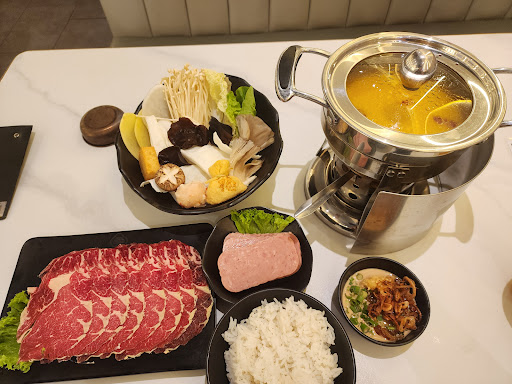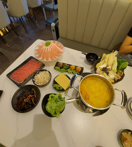 Dinner dated 17 April 2025. Golden fish maw soup, acceptable taste but had a coarse like sensation with every mouthful of soup. Maybe my personal food preference issue. The iberico pork collar tasted exactly as what it was. The taste was similar to those I purchased from frozen food section. The 4 x shrimp paste platter looked appealing, but taste wise didn't wow me. The plate of vegetables, black fungus, processed food and etc, all tasted normal as what they should be, except the fishball. It was very fishy, don't know left in room temperature for how long already. WORD OF CAUTION, if you are bringing kids to eat at this place, be wary and not let them near to the hotpot. The hotpot will kept cooking at a constant temperature without means to lowering the heat. When I scooped the soup with the only available black spoon, it was very hot. My hand was exposed to the smoke only and it felt really hot. Imagine coming into contact with the hotpot or that metal sheet (probably for covering up the fire). I highly suggest the owner of this eatery to procure long ladle for scooping whatever within the hotpot. Gave 3 stars only for the freshly squeeze lemon tea with less sugar. I could hear the pounding of lemon from where I was sitted. Good job with the lemon tea. Service crews were monotonous, but didn't affected my eating session. One of the service crews did top up my soup after spotting it less than half full. Hence deserved 5 stars for service. 5 stars for comfy air-conditioned eating environment. Will you see me again, probably in...