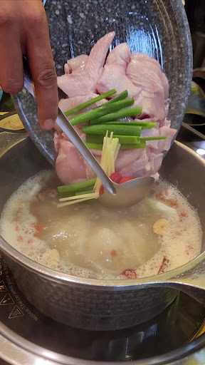 Ordered set A with half a chicken together with the hotpot, the chicken was cooked by the staff for around 3 minutes and then the staff added some alcohol and served us soup and let us try if the alcohol level was ok.