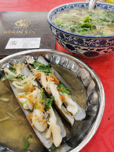 Now about the food. I ordered bamboo clams (rm58 for 2pcs) and grouper + pork ball mee hoon soup (rm 11 for 1 person). Broth wise is decent. I can drink the whole bowl but won't say wow. I'm used to eating Quan Xiang (Bt Timah, Singapore). Comparatively speaking, there's a certain fragrance Quan Xiang's soup has and the fish is silky soft. Woon Yin's fish isn't fresh. It's slightly tough and old. I would not recommend this. It was supposed to be their signature, the cause of brother rivalry but I was disappointed.