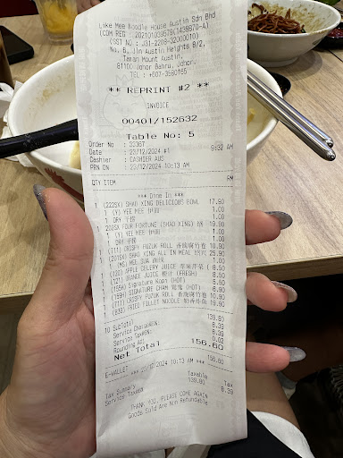 Read moreKitty and I, along with two of our friends, were staying at a Prince 33 in Mount Austin and decided to try 赞麵館 猪肉粉 Like Mee Noodle House for breakfast because our friend raved about their pork noodle soup. We had read some mixed reviews about their food and service, but we were pleasantly surprised. We didn't encounter any bad service within the shop, and all of the food was nicely cooked. We didn't experience any uncooked food served to us.