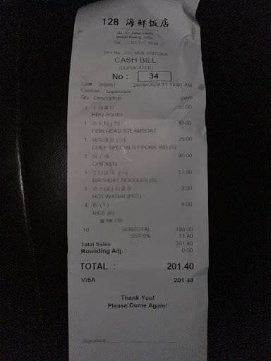 please spare a moment to read this and I don't want anyone to get cheated as it has happened to us. Also please read the terms and conditions from the picture that I have uploaded below before you start with the story. So basically, what happened was we booked a hall at this 128宴宾楼 at Taman Sri Kluang behind the Giant for my sister's wedding dinner on 9th June 2019. Basically we all knew we pay deposit at first before the full payment and when my mom came to pay the balance payment they showed us the terms and conditions telling that we have to pay for the DEPOSIT FOR SPECIAL DAMAGES as it is a must otherwise they said we can't use the hall. So, my mom when back again to settle the RM500 but when she PAID the DEPOSIT FOR THR SPECIAL DAMAGES they told that there is no need to issue any receipt. Finally we went to get back the deposit today as there is no any damages to the hall, they said we don't pay any of the deposit for the Special damages. And since we don't have any receipts telling that we paid for the deposit. Even they didn't issue any receipts they still asked for the deposit receipt which doesn't make sense. We asked for the CCTV footage but they said their footage has been erased. The only thing I would like to inform everyone here is please do not visit or recommend this restaurant or hall for anyone as you might go throw the same. They treated us so badly. So Please guys always be aware. They clearly cheated us to the max. #Please share as much as you can Kluang people. Thank you so much for your time. Much...