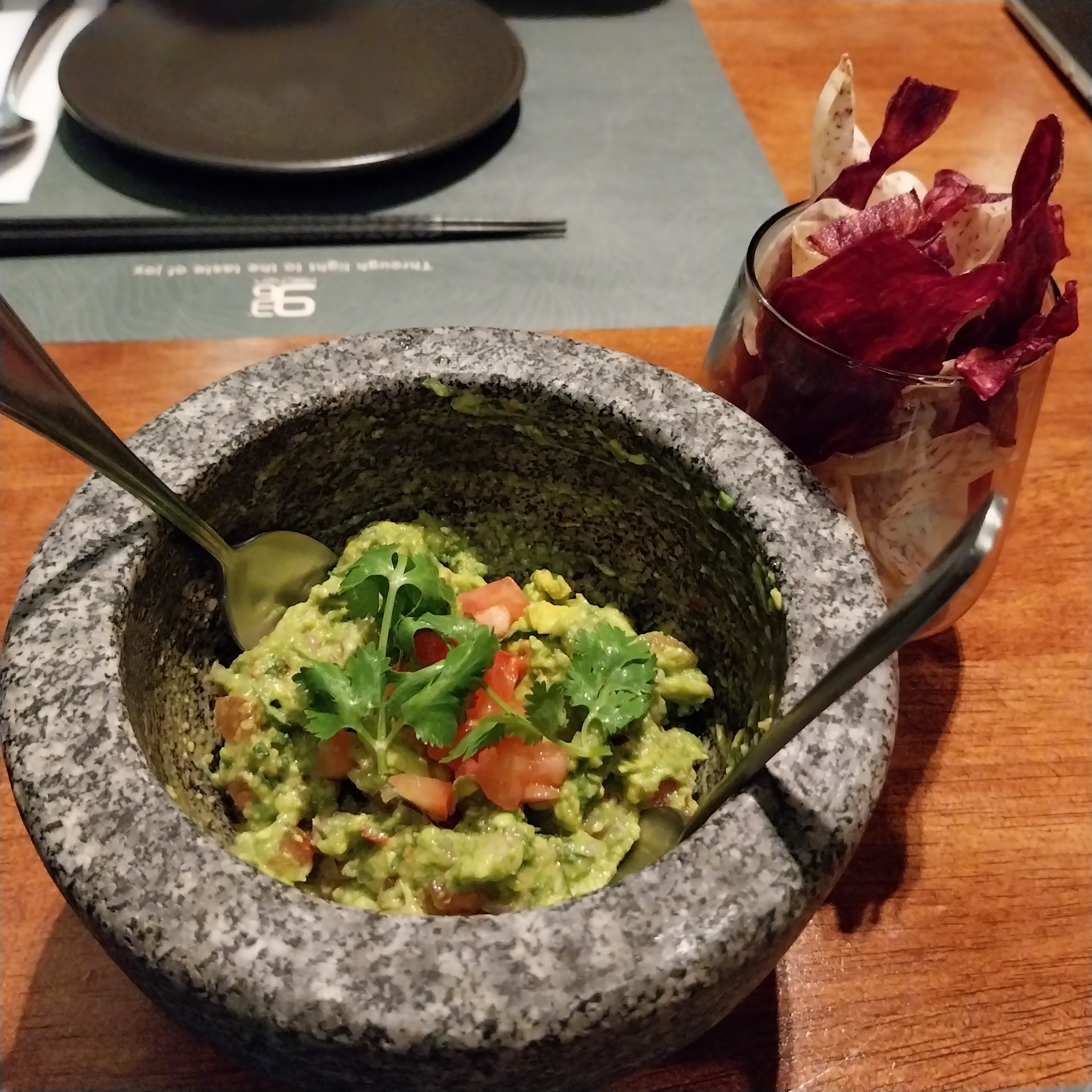 Read moreThe guacamole served in a rustic molcajete is fresh, chunky, and vibrant, teeming with the flavours of ripe avocado, tomato, and cilantro. The accompanying chips are a delightful twist, adding a satisfying crunch to each bite. Together, they make for a yummy and refreshingly original take on a classic dish.
