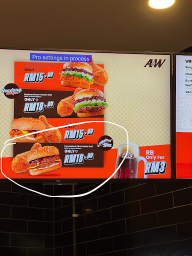 Asked counter for RM18 Caramelized Bliss Double Beef with add on Root beer float she asked if I want add on fries I said okay. I paid 28rm expecting 1 burger 1 chicken 1 fries and 1 root beer float. In the end i got all except chicken. I asked the counter the manager came in and said I ordered the meal that doesnt include the chicken. It ruined my mood as I was expecting to eat a chicken drumstick, and it became MY FAULT for choosing the wrong meal and it’s the COUNTER that suggests me that meal, who would choose to eat fries over chicken, and having the fries to be MORE EXPENSIVE than it?? Food is ok, all hand-wash taps are spoilt…
