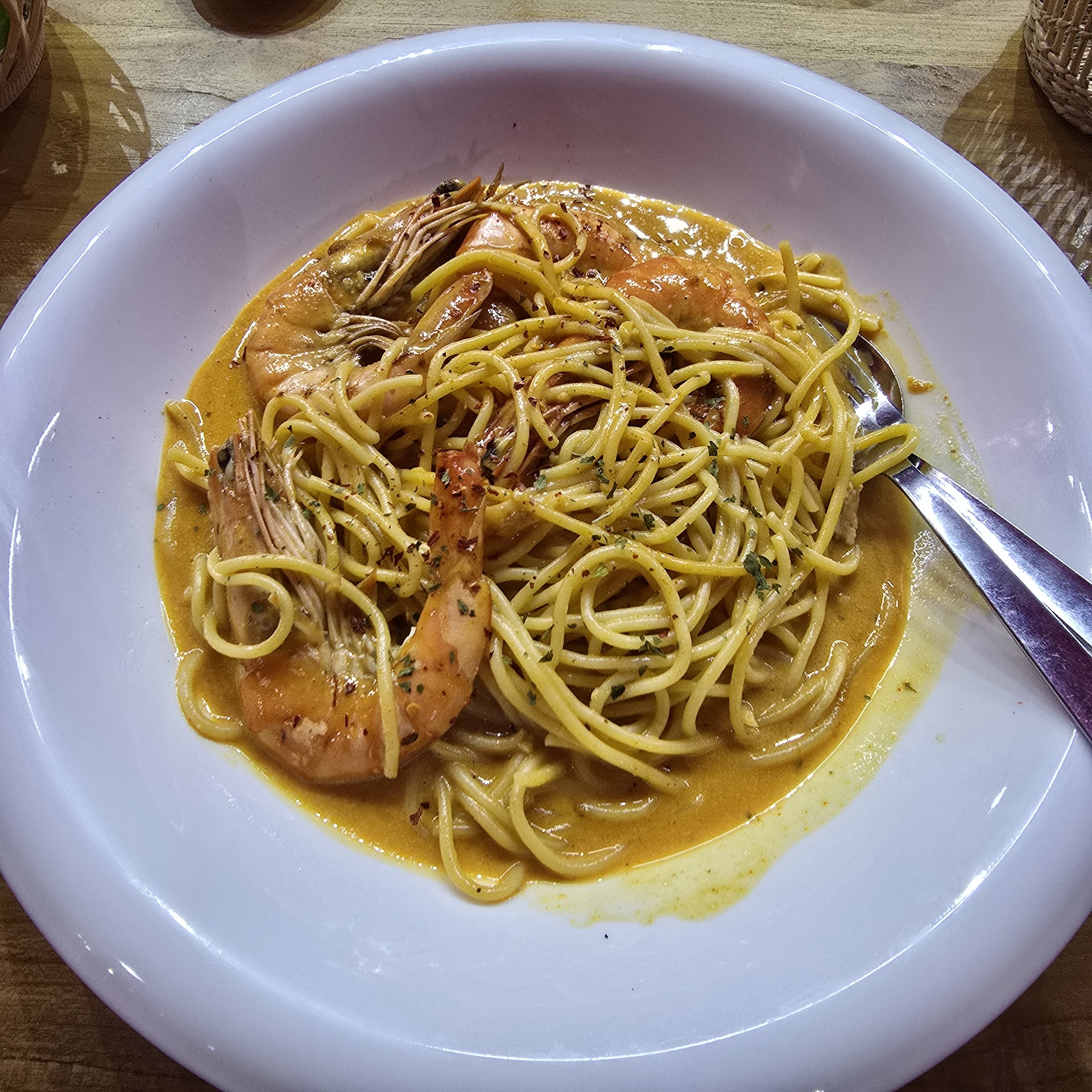 Pasta from the salted egg prawn was undercooked but the prawn were above expectations.