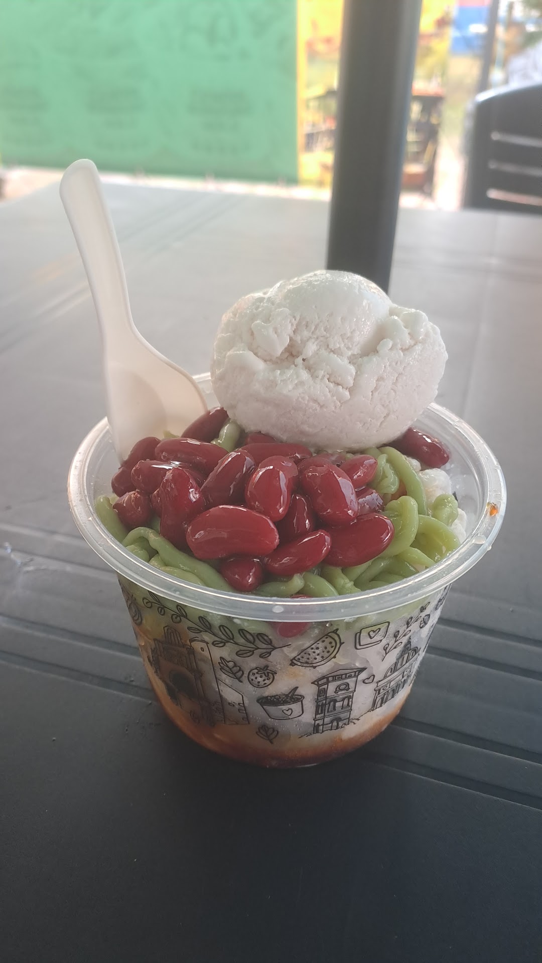 Not the familiar cendol tatse. The ice kinda like bingsu type of ice. It was sticky and gooey texture. The brow syrup at the base shouls be gula malacca, but it didn't have that taste and fragrant of it. The red bean was big and soft. The green jelly was mediocre. The ice cream was sweet and average. The durain tasted like D24.