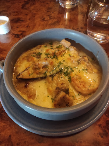 My friend's main wagyu sirloin is cooked to perfection, slightly under seasoned but the tenderness is spot on. The only small complain in the sauce that it's served with. The reduction is a little bit on the light side for the meat. The sauce is however very good for the mash potato, silky smooth mash. The side carrots is a plus point, could feel the time and effort for scraping and softening the carrot then cooking it in sweeten butter. The Fruits de mer en Gratin is excellent, the seafood within this bowl of treasure is very fresh. Only very slight funky taste from the clams but other seafoods is very fresh. There is clams, scallops, prawns and fish. All this is smother with a umami and slight hint of lemon type of gratin. The flavour is very oceanic, like a sea breeze, would highly recommend.