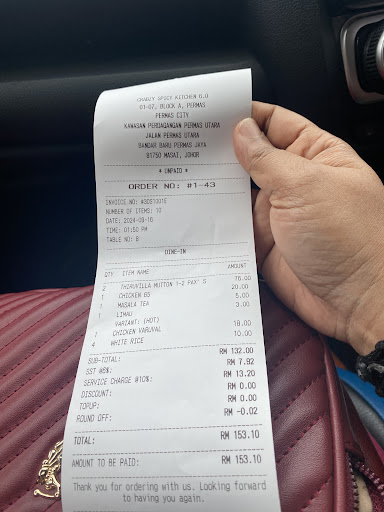 Near to my place ..1 phone given for ordering the food as the staff told us there is no menu , so we need to wait while others order .. later on saw other customer ordering via menu .. we ordered 2 mutton thrivilla sapade and 1 chicken bamboo briyani , we need to reorder many times as the staff taking orders via memorizing system and note writing down or using any gadget .. our orders took very late to arrive .. thruvilla sapade mutton came in tiny pieces with tiny bones in it .. bamboo briyani came with bamboo but in a plate , chicken 65 was charged rm20 but very little portion and salty, drinks came in small mug was unacceptable.. balance curry we ask for take away for both pots which was curry still full with mutton but sadly the mutton curry came so little when we asked the staff that is the curry for both pots .. he said yes and we said impossible as the gravy was a lot and I ask him if the curry was thrown and the staff said yes canât fit in one container so I throw it .. seriously how come they can throw the food that we paid for I felt this so insane !!! and the curry is given not in Tupperware, donât mind if they charge for the Tupperware but given in disposable container only .. we need to call the staff many times and repeat it to almost all of the staff there for something.. we were shocked to see the bill as rice was charged for 4 pax which is rm10 and not included in thruvilla sapade when asked the cashier told yes 4 free rice given and this is additional luckily we were alert as didnât take any extra rice .....