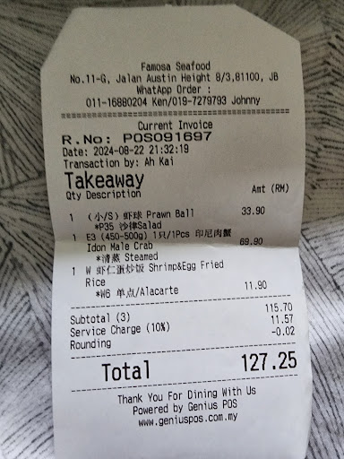 Read moreFood was good, nothing to complain. We ordered lala pot one set, and salty egg crabs. Good taste and fresh seafood. That time got promotion of coconut shake small cup rm1.88. the only weird problem was that my kids were given free 2-3 scoops melted half vanilla ice cream while we were all eating half way. Firstly it was already melted half very watery. Secondly , served too early during meals means that spoilt the kids appetite as they wanted to eat ice cream first especially it was melted badly. I appreciate the free ice cream but hope in future restaurant can be more considerate for such matter. Otherwise, we enjoyed the good meals overall. We still happy to come...