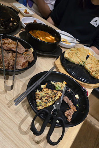 While the portion sizes were generous, that was the only positive aspect of our experience. The quality of the beef was extremely disappointing – it was so chewy that I eventually gave up trying to eat it. The bibimbap was bland and lacked flavour, while the seafood pancake was overly thick with flour, making it unappetizing.