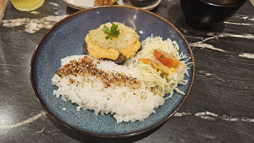 Read moreCame here on a Sat afternoon and got a table for 2. The place was almost fully occupied but there was no queue. We ordered the togarashi pineapple Hamburg pork rice (27.90), and the red wine Hamburg beef and pork plate (39.90). The togarashi Hamburg has a very delicious sauce that is slightly sour and spicy. It went well with the vinegared Japanese rice. The red wine Hamburg came with a savoury sauce that is slightly salty. The plate came with a mashed potato with bacon bits, which was quite blend. I would recommend the rice instead of the mashed potato because it's cheaper and more delicious. As for the beef+pork vs the pork, I think it's not worth going for the beef because the pork is just as nice on its own. The ambiance was nice and quiet with soft Japanese music in the background. After we made payment they gave us a 5rm return voucher. I will definitely come here again...