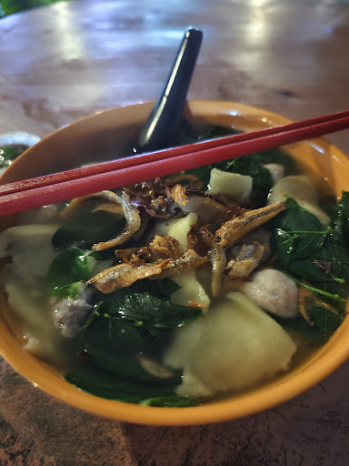 Tried Mee Hoon kueh soup. Pretty good though ingredients not much. Spicy sausage is TW 香肠 sprinkled with lots of crunchy spicy chilli thingy.