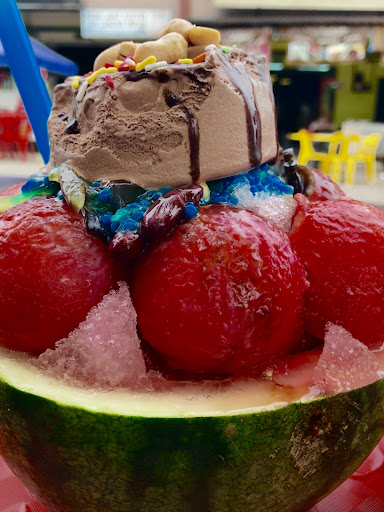 They used to sell at the roadside near Sierra Perdana before.. Now they've rented a shoplot and sharing with other hawkers... So choice is plenty.. As the name of the shop suggested, they are selling ice melon which is shaved ice in watermelon casing with scoops of watermelon flesh as toppings (among other things).. Also selling other kind of shaved ice.. Other hawkers, including mee celup (thai version of noodle soup), satay (night time), char kuay teow (stir fried rice noodles) and western food... They also sell tomyam restaurant kinda food... So yeah, like i said plenty of choice... Food taste is quite good.. Price is normal and...