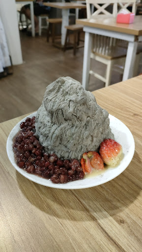 Ordered Black Sesame Strawberry Red Bean snow ice. The strawberry is very sad looking, only two small unripe strawberries cut up which is not like the one shown on the menu. On the other hand, there are a lot of red beans. I ordered this over the peanut one for the strawberries but was disappointed. The ice is smooth and has a light black sesame taste. The outer layer tasted better because of some drizzling which is more sweet compared to the inner layer of ice.