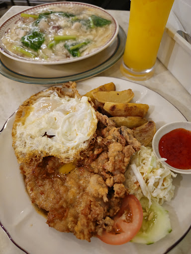 Read moreCome to Johor Bahru and very likely you will see this restaurant as one of the recommended places to eat. Knowing this could possibly be a touristy eatery, I decided to visit nonetheless. I came in the evening and there were much lesser people compared to the daytime I reckon. They offered both indoor and outdoor seatings. The indoor came with very simple decorations emulating kopitiam interior of the past. I ordered a plate of their famous deep fried chicken chop and I opted for their black pepper sauce. I also got a plate of their koay teow cantonese which was basically a wat tan hor. Food didn't take long to be ready and the chicken chop did look rather sizeable with chunks of potato wedges and coleslaw on the side. The chicken chop was prepared with a standard coating of batter which had some light crisp. The chicken meat was tender and moist. The black pepper sauce was decent although I hardly had any taste of black pepper. The chunks of wedges weren't like your typical fries because instead of pillowy soft, the wedges gave a little bit of a tougher texture. Overall this dish scored an average at best in my opinion. Let's talk about the koay teow cantonese. The gravy was of a gooey slurry consistency which is expected with this dish. However I felt that it lacked taste and aroma. Thankfully the koay teow had a stronger aroma with hints of wok fried goodness. Having said that, I still thought that this dish was not the best and I would suggest to give it a skip. This experience here had satisfied my curiosity for their famed food but the overall average taste left me with no urge...