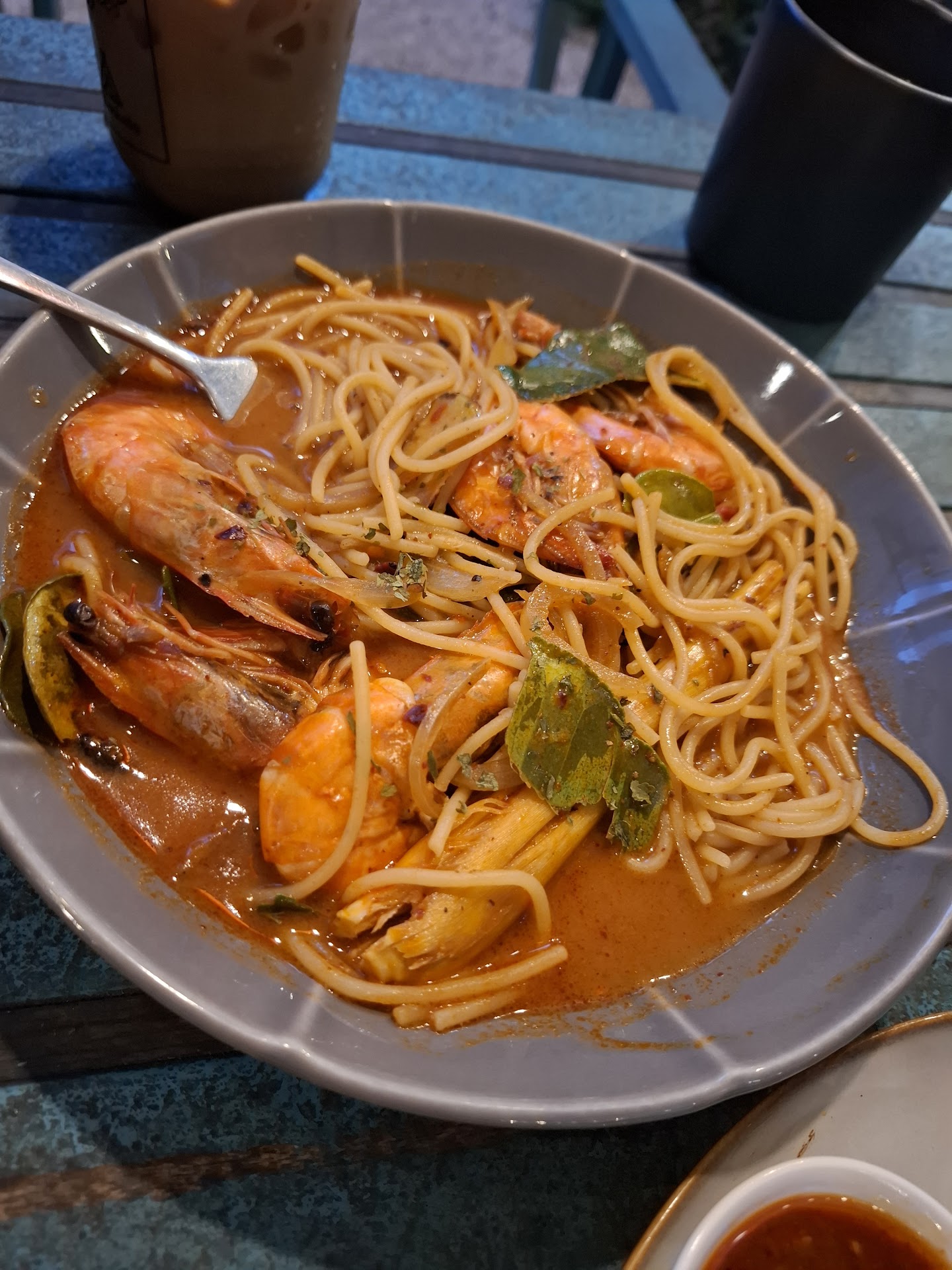 Read moreFood we had was AWESOMEE!! Love it. My favourite is their Carbonara Spaghetti!! They have good mala Aglio Olio and curry chicken too. All three definitely worth trying!! Love love their music playlist!! Love their atmosphere!! (Surprisingly no mosquito AT ALL, windy, peaceful atmo with a lil music playing in the background😌) Besides, our attending waiter was also friendly and patient, even with bunch of questions we asked about the food. The only two things that could be improved would be their network (not sure if they could do anything with this) and their iced matcha latte i would say? The matcha flavor could be a little stronger imo. Overall, the music playlist and the carbonara spaghetti really caught my heart, which really boosted the entire experience. I will definitely visit again whenever I...