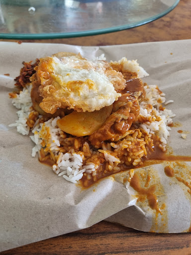 I ordered curry rice, but I got small things like spring rolls, beans, otak, banana (I don't know why there is banana inside), sambal and NO CHICKEN, NOT EVEN BONE. I asked the lady why they gave these instead of chicken which used to have 3-4 pieces of chicken. However the lady explained me that those are package and the boss forgot to take chicken due to old 🤨. I came here many times in the past few years and never heard this kind of package or written on the board.